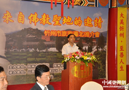 市委常委、副市長(zhǎng)王士樺推介忻州旅游資源。(圖片來(lái)源:忻州市臺(tái)辦)