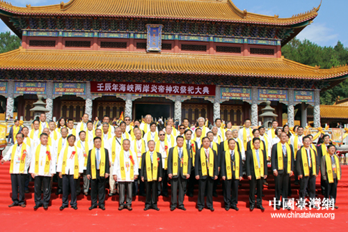 參加祭祀活動的兩岸嘉賓代表于神農大殿前合影。(中國臺灣網 陳睿 攝)