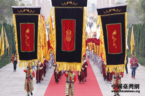 主祭隊伍沿著祭祀大道前往祭祀廣場。(中國臺灣網 陳睿 攝)