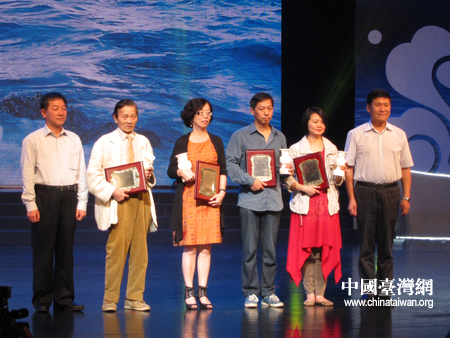國臺辦副主任葉克冬及海南省委副書記李憲生為獲獎詩人頒獎。左起:葉克冬、羅門、舒婷、潘維、顏艾琳、李憲生。(中國臺灣網 薛白璐 攝)