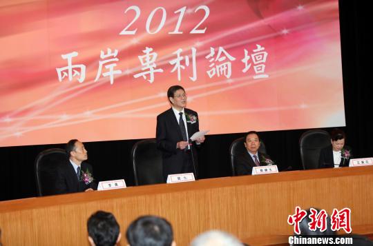 圖為賀化(左2)在開幕式上致辭!《瓡濉z 中新網(wǎng)臺北12月4日電 (記者 董會峰 路梅)2012第五屆兩岸專利論壇今天在臺北開幕。