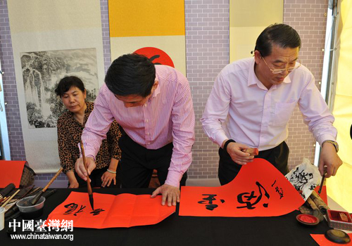 中國臺灣網(wǎng)2月26日高雄消息 日前開幕的“北京特色周”上,來自北京的三位書畫名家程茂全、譚軍立和王靜為高雄市民免費題字,將北京的祝福送到高雄市民手上。