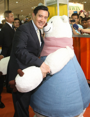 電據(jù)臺(tái)灣“”報(bào)道,臺(tái)灣當(dāng)局領(lǐng)導(dǎo)人馬英九28日參加2013臺(tái)北國際機(jī)器人展,并與一只北極熊造型的機(jī)器人擁抱。
