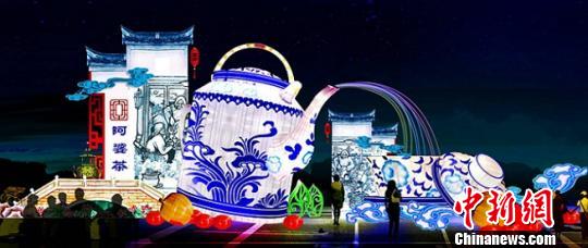 薈萃兩岸傳統(tǒng)文化的首屆海峽兩岸(昆山)中秋燈會9月17日將揭開序幕,圖為大型燈組設計效果圖!±バz