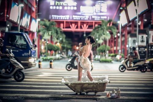 其實(shí)這張?jiān)谛帕x區(qū)街頭拍的照片讓不少人驚艷,仔細(xì)瞧瞧這名正妹,不顧車來車往把浴缸搬到斑馬線,當(dāng)街全裸洗泡泡浴,重點(diǎn)部位全靠泡沫遮掩,唯美又大膽的作品開始在網(wǎng)絡(luò)瘋傳。照片曝光后,網(wǎng)友火速找到剛從政大畢業(yè)的林亮亮,個(gè)人社交網(wǎng)站也有她外拍的一系列美照,精致五官在鏡頭前頗上相。浴缸照曝光后,人氣更是暴漲,還有人懷疑是合成照。