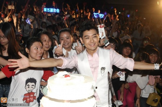 上海,13日,林志穎舉行生日會(huì),林志穎帥氣亮相獲贈(zèng)大蛋糕,與女粉絲親密合影擁抱來者不拒。