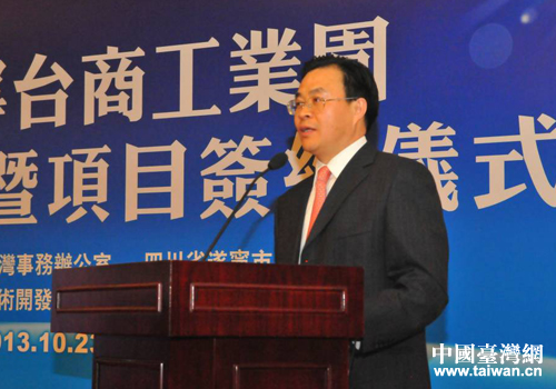 四川省臺辦副主任張軍在推介會上致辭。