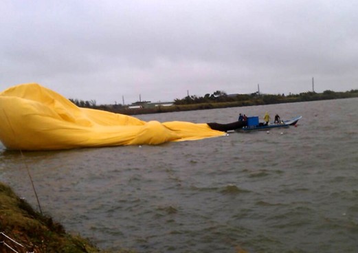 周四晚間,桃園新屋鄉(xiāng)后湖村停電,小黃鴨打氣機無法充氣,屋漏偏逢連夜雨,備用發(fā)電機不明原因停擺,造成小黃鴨漏氣。周五一大早工作人員到場,看到小鴨的狼狽樣,急忙充氣善后。但已有游客到場,拍攝到照片了。