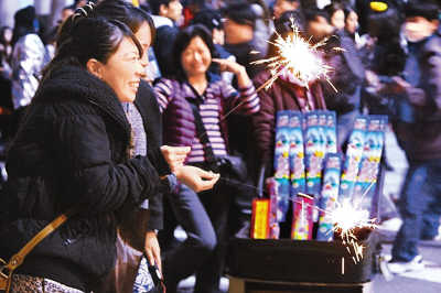 101發(fā)射出的璀璨煙火,映襯在每位帶著歡笑的民眾臉上。在人潮擁擠的松勤街上,有民眾打出“FREE HUG”的牌子,尋找似乎失落的都市溫情。還真不時(shí)有人上前,與他“愛的抱抱”。