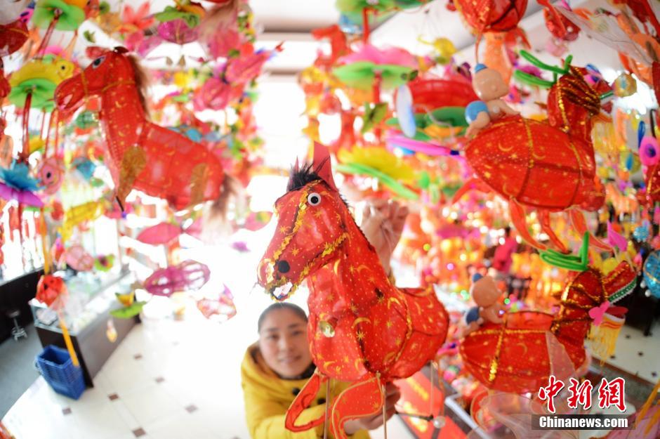 2月10日,隨著正月十五元宵節(jié)的臨近,江蘇揚州的花燈市場銷售火爆,眾多市民和游客前來選購花燈,喜迎佳節(jié)。揚州素有“正月十三上燈,十四試燈,十五正燈”的習(xí)俗,目前揚城的花燈市場內(nèi)眾多形態(tài)各異、款式新奇的花燈“競相爭艷”,不管是傳統(tǒng)的紙扎花燈,還是現(xiàn)代的電子花燈,都很受歡迎,不過最走俏的還是傳統(tǒng)的生肖“馬燈”。孟德龍 攝