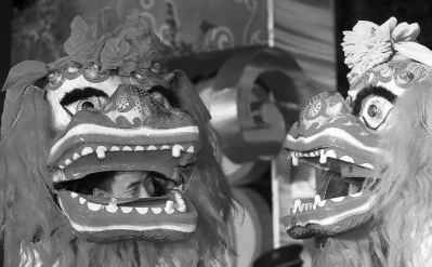 舞獅人員正在準(zhǔn)備表演舞獅人員正在準(zhǔn)備表演。。