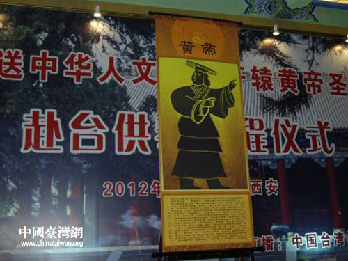 2012年清明前夕,陜西曾派專(zhuān)人恭送中華人文始祖軒轅黃帝圣像赴臺(tái),臺(tái)灣同胞在臺(tái)中舉行了盛大的恭迎中華人文始祖軒轅黃帝圣像儀式,并將圣像供奉于“壬辰年中華民族海內(nèi)外同胞聯(lián)合祭祖大典”上。(記者 雷愷)