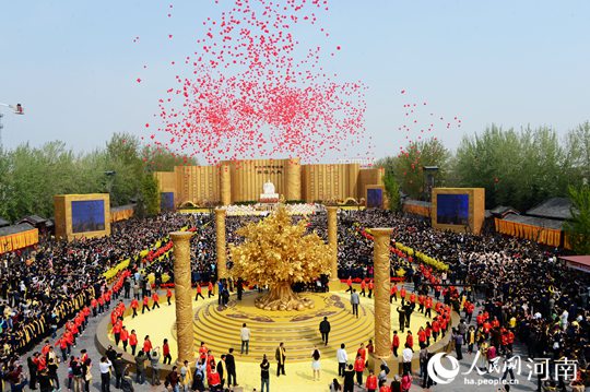 2014年4月2日,農(nóng)歷甲午年三月初三上午9:45,甲午年黃帝故里拜祖大典在河南新鄭舉行。來自海內(nèi)外的各界嘉賓參加盛典,共同拜謁中華民族的始祖軒轅黃帝,祈福中華民族偉大復(fù)興。
