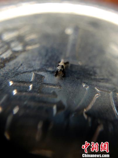 大陸贈(zèng)臺(tái)大熊貓團(tuán)團(tuán)圓圓的后代圓仔給臺(tái)灣民眾帶來了歡樂,也成為臺(tái)灣藝術(shù)家表現(xiàn)的對(duì)象。近日,臺(tái)灣著名微雕家陳逢顯創(chuàng)作一只“微雕熊貓”,只有0.5毫米長。