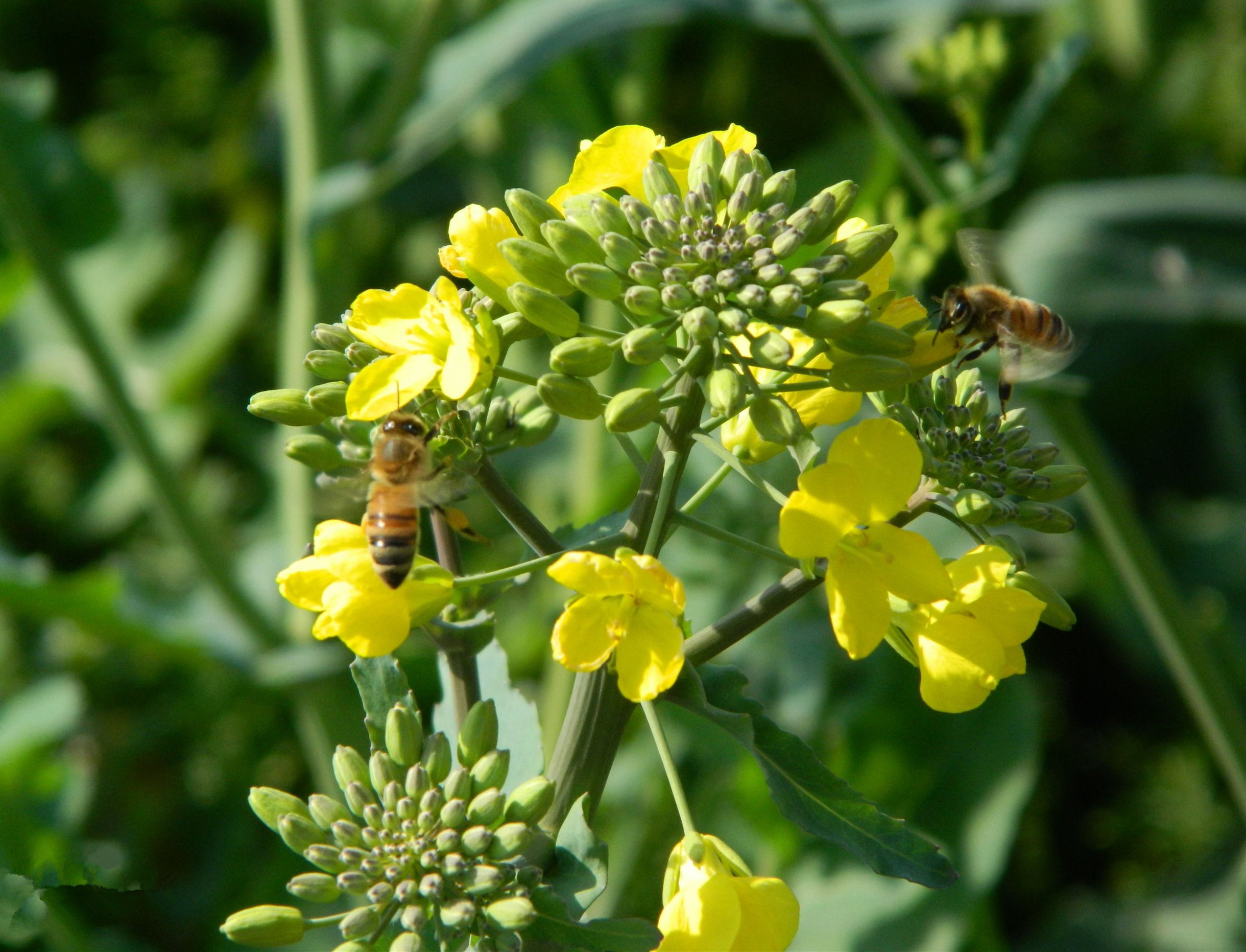 兩只小蜜蜂,飛在油菜花叢中。(網(wǎng)絡(luò)圖片)