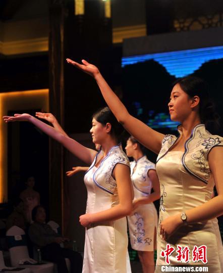 禮儀小姐在發(fā)布會(huì)上展示禮儀文化!∈Y雪林 攝