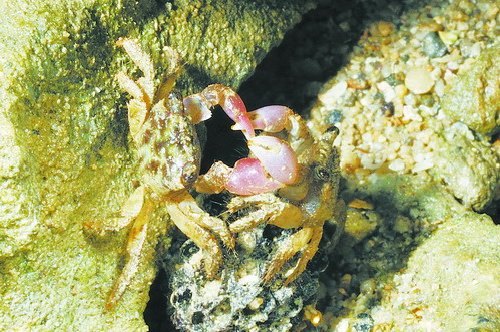 據(jù)臺灣媒體報道,屏東海洋生物博物館研究團隊日前在墾丁萬里桐潮間帶發(fā)現(xiàn)毛線小相手蟹(上圖)和安德遜小相手蟹(下圖),這一發(fā)現(xiàn)使臺灣陸蟹種類再添兩種。