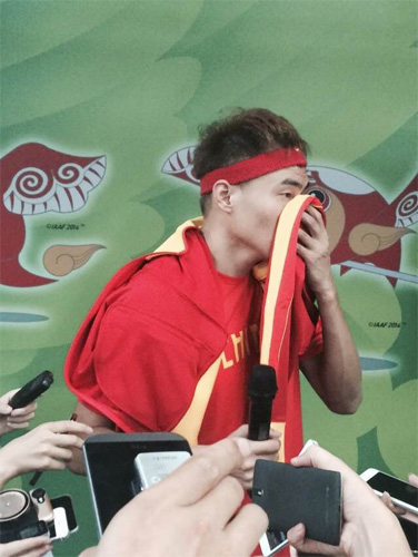 賽后接受采訪時李金哲也是無法掩飾失望,他承認確實對這屆世錦賽充滿了期待,“知道北京申辦世錦賽成功,一直等著今天,足足等了五年,但是運氣不太好,第一跳沒跳起來,如果跳出8米就不會這么難了!