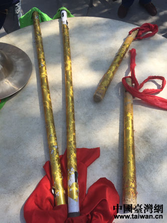 黃羊錢鞭有龍門陣、一字長(zhǎng)蛇陣、雙龍戲珠陣等套路。最多可以達(dá)到百人同舞(中國(guó)臺(tái)灣網(wǎng) 蕪?fù)?攝)