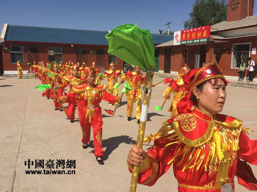 在寧夏中寧縣的黃羊村,農(nóng)民大媽們舞起黃羊錢鞭(中國(guó)臺(tái)灣網(wǎng) 蕪?fù)?攝)