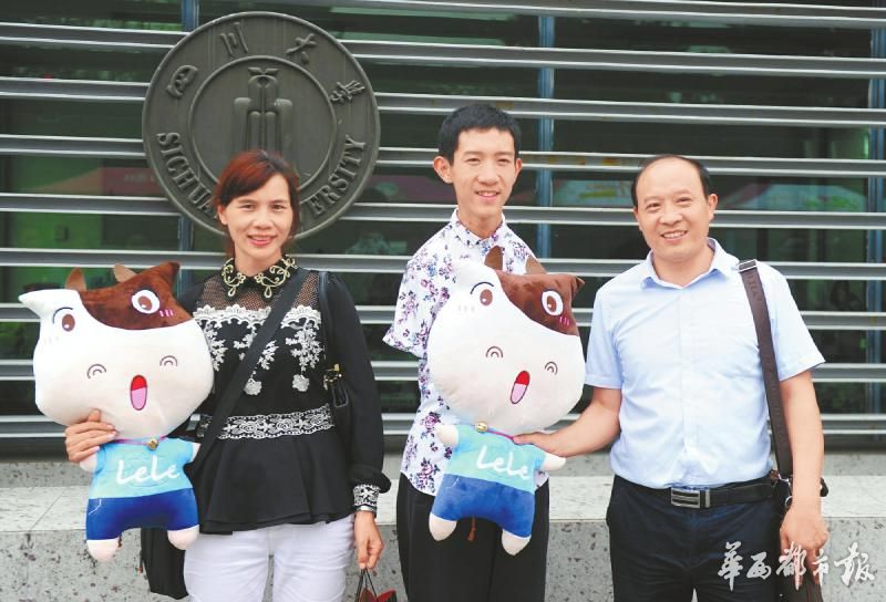 9月12日,四川大學江安校區(qū),彭超和父母在校園門口合影。