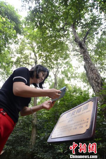 9月15日,在湖南郴州三合村古樹群內(nèi),游客在用手機掃描樹牌上的二維碼!∽T志文 攝