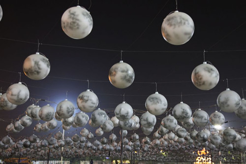 “‘月之魂’部分的2498個‘月亮’,時間軸從建城時起到2014年,每一個“月亮”代表一年;每盞燈由直徑0.6米的小球組成,為了達到逼真效果,設(shè)計人員用半透明半鏡面的涂刷方式來實現(xiàn)月亮斑駁的藝術(shù)效果,亮燈的時候就跟真實的月亮一樣,非常震撼!崩枞航榻B。