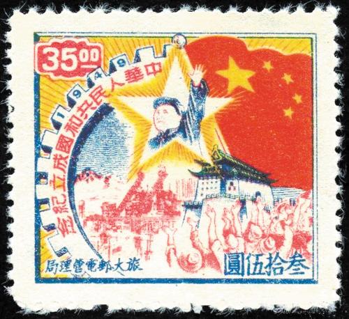 1949年10月1日,中華人民共和國成立,由于歷史條件限制,國家郵政沒有及時(shí)發(fā)行建國紀(jì)念郵票。當(dāng)年11月1日,東北解放區(qū)的旅大郵電管理局發(fā)行了《中華人民共和國成立紀(jì)念》一套郵票,這是新中國成立后發(fā)行最早的國慶題材郵票。