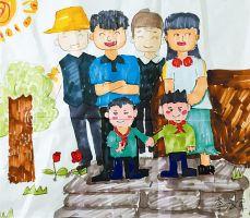 而那之后,在媽媽的鼓勵之下,畫全家福竟成了每年春節(jié)的一個固定節(jié)目。和照相館里那些千篇一律的全家福不同,隨著永軍的繪畫技巧在不斷提高,以及對家和愛的理解的加深,永軍的畫里加入了很多有趣的創(chuàng)意和可愛的奇思妙想。弟弟曾經(jīng)不止一次驕傲地說,哥哥畫的全家福,比照相館里的好一萬倍。永軍筆下的全家福里,記錄著生活的喜悅:兄弟倆都考了雙百,地里的莊稼大豐收,家里買了大電視,自己考上了大學(xué)、結(jié)婚生子……