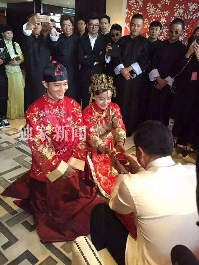 8日上午,黃曉明Baby舉行中式婚禮儀式,叩首、奉茶、拜天地,中式的婚禮禮儀總帶著濃濃的人情味。今晚17:30分,黃曉明和Angelababy將在上海展覽中心舉辦“世紀(jì)婚禮”。王思聰、小沈陽 、黃渤 、李云迪 、臺(tái)灣富少林昕陽等組成“伴郎團(tuán)”;倪妮 、賭王女兒何超盈等擔(dān)任伴娘;王詩齡當(dāng)花童。嘉賓很多,明星多達(dá)百人。
