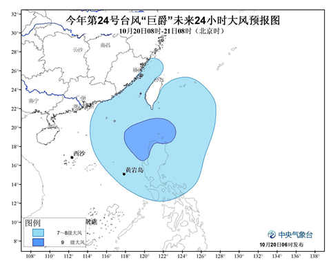 中央氣象臺預(yù)計,20日8時至21日8時,受"巨爵"和冷空氣的共同影響,臺灣海峽、臺灣以東洋面、巴士海峽、南海東北部和中東部海域?qū)⒂?~8級、陣風(fēng)9~10級的大風(fēng),"巨爵"中心經(jīng)過的附近海域風(fēng)力將有9級、陣風(fēng)可達10~11級,東海南部海域?qū)⒂?~7級、陣風(fēng)8級的東北風(fēng),南海東南部海域?qū)⒂?~6級西北風(fēng)。另外,渤海將有5~7級、陣風(fēng)8級的東北風(fēng)。