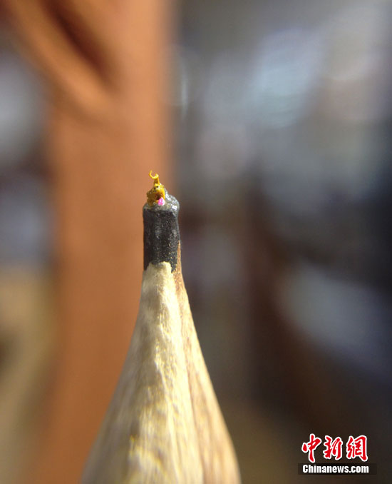 臺(tái)灣雕刻家陳逢顯刻“世界最小”猴子僅1毫米(圖)