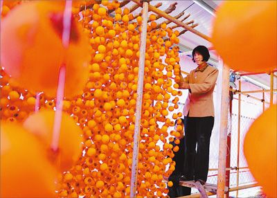 10月25日,山東省沂源縣東里鎮(zhèn)鄭家旺村的農(nóng)民在對(duì)柿子進(jìn)行刮皮加工。霜降過(guò)后,沂源縣的5萬(wàn)余畝柿子豐收,加工成柿餅后,出口韓國(guó)、日本等國(guó)家,成為當(dāng)?shù)剞r(nóng)民增收的特色產(chǎn)業(yè)。