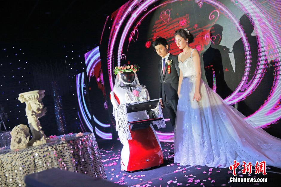 11月1日,在天津的一場婚禮上,一臺名為“昊越”的機器人擔任了“伴娘”的角色,見證了一對新人的幸福時刻。據(jù)悉,該機器人由天津一家科技公司研發(fā)的送餐機器人改造而成,它可以為新人遞上婚戒,送上語音祝福等。
