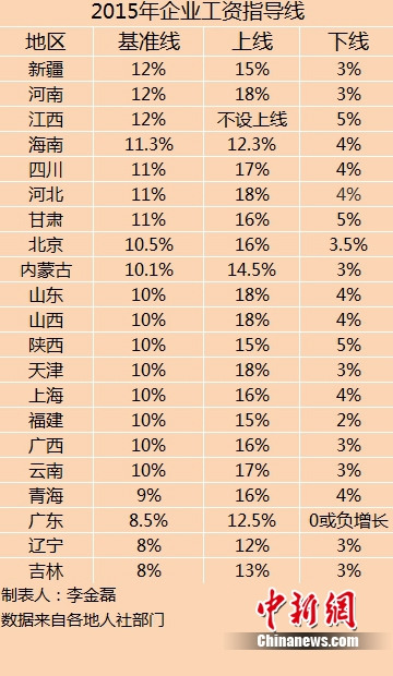 21省份公布2015年工資指導(dǎo)線