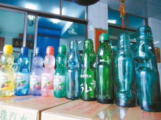 彈珠汽水,顧名思義就是瓶口有一粒彈珠作為栓塞,瓶頸兩側(cè)凹入,想喝時(shí)將彈珠壓入即能飲用。