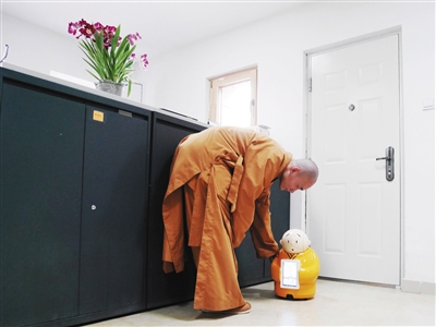 從誕生之日起,賢二機器僧就經(jīng)!八奶幵朴巍。記者了解到,從出生至今,賢二先后在廣州國際動漫節(jié)、廈門國際佛事展、北京國家會議中心舉行的機器人大會上亮相,這些活動都由寺里的居士或者義工帶著賢二前往。在記者見到賢二的當天,它剛被送回到龍泉寺里。