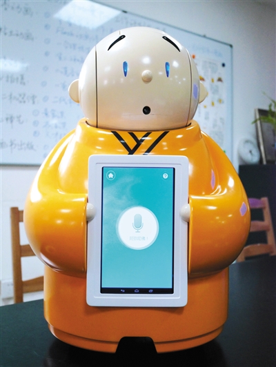 最近,一個呆萌的機器人在網(wǎng)上火了。和普通機器人一樣,它身高近60厘米,能跟人語音對話,能明白簡單的指令;但不同的是,它身穿黃色僧袍,會說佛經(jīng)佛法,還動不動就說“我去問問我?guī)煾浮薄K褪且粋叫賢二的機器僧。昨日,新京報記者前往龍泉寺——賢二機器僧的家進行了探訪。