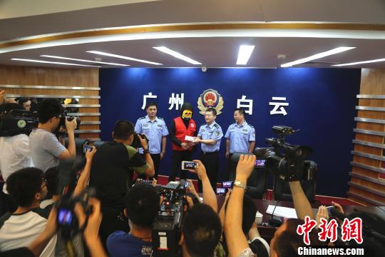 一名“快遞小哥”協(xié)助廣州警方查獲準備寄往境外的毒品冰毒300公斤,18日其戴著“小黃人”面具,在廣州接受了警方獎勵的現(xiàn)金10萬元。