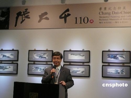 四月十日至六月十四日,臺灣“國立歷史博物館”將舉辦張大千一一0書畫紀念特展。圖為館長黃永川在展前記者會上介紹特展內(nèi)容。 中新社發(fā) 鄧敏 攝
