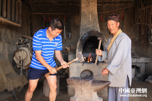 我做事就是這么認(rèn)真—東南衛(wèi)視海峽新干線吳明東模仿打鐵(中國臺灣網(wǎng) 楊永青 攝)