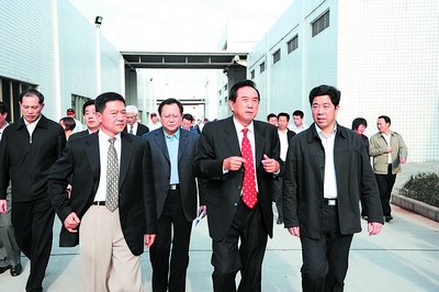 今年4月,省委常委、市委書記陳潤(rùn)兒(前右一)陪同海協(xié)會(huì)會(huì)長(zhǎng)陳云林(前右二)視察臺(tái)資企業(yè)長(zhǎng)沙鎂鎂科技有限公司。 資料照片