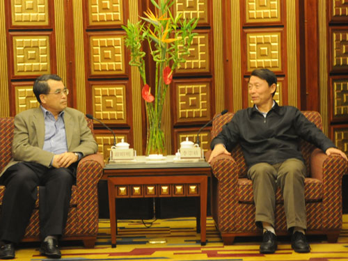 3月25日,四川省委副書記李崇禧(右)在成都錦江賓館會(huì)見了來川訪問的亞洲最大果蔬汁飲料生產(chǎn)商臺(tái)灣佳美集團(tuán)董事長(zhǎng)游昭明一行。圖片來源:四川省臺(tái)辦
