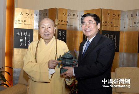中國臺灣網(wǎng)5月6日西安消息 5月4日下午陜西省省長袁純清在西安會見了由惟覺長老率領(lǐng)的中臺禪寺參訪團(tuán)一行。