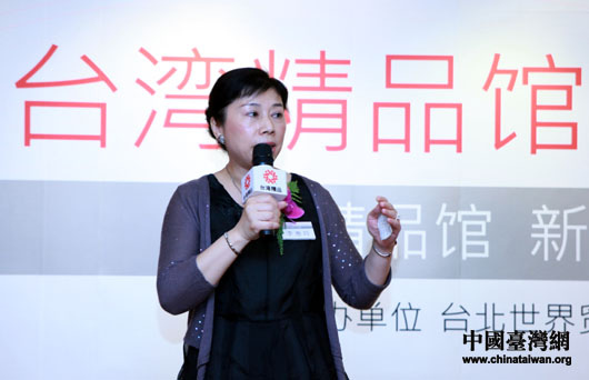 臺(tái)北世界貿(mào)易中心營(yíng)銷(xiāo)項(xiàng)目處處長(zhǎng)、“臺(tái)灣精品館”館長(zhǎng)李惠玲在新聞發(fā)布會(huì)上致辭。(中國(guó)臺(tái)灣網(wǎng) 鐘寶華 攝)