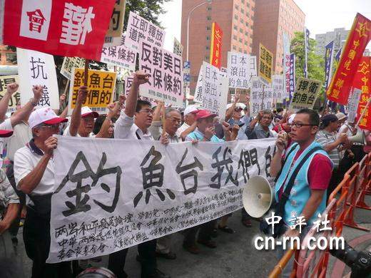 據(jù)中評(píng)社報(bào)道,兩岸和平發(fā)展論壇與中華保釣協(xié)會(huì)等團(tuán)體今天上午號(hào)召百余人赴日本在臺(tái)交流協(xié)會(huì)抗議,他們喊口號(hào)要求日本政府“道歉、放人、賠償”,并且當(dāng)場(chǎng)焚燒日本國(guó)旗,丟魚(yú)泄恨。
