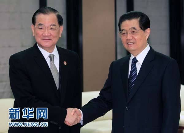 11月13日,中共中央總書記胡錦濤在日本橫濱會見中國國民黨榮譽主席連戰(zhàn)。新華社記者樊如鈞攝