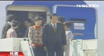 陳云林步出機艙門時笑容滿面。 來源:臺灣TVBS電視臺