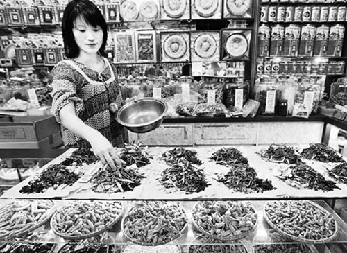 臺(tái)灣90%的中藥從大陸購買,圖為臺(tái)北迪化街中藥商正在抓中藥