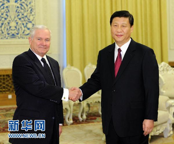 國(guó)家副主席、中央軍委副主席習(xí)近平10日下午在人民大會(huì)堂會(huì)見了來訪的美國(guó)國(guó)防部長(zhǎng)羅伯特·蓋茨一行。